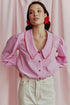 The PETITE shirt in a powder pink shade combines classic elegance with a subtle touch of romance. It stands out with a large, feminine collar adorned with a contrasting trim and voluminous sleeves that add lightness and ease. The red buttons serve as a stylish accent, highlighting the shirt’s unique character. Made from high-quality fabric, it ensures comfort and is perfect for both everyday and more elegant outfits.