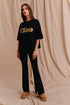 A loose-fit black t-shirt featuring the word "Ciao" on the front. The lettering is made from a material with a leopard print pattern, giving the shirt a fashionable and bold character. The t-shirt has short sleeves and a classic round neckline. It’s the perfect choice for casual outfits, combining simplicity with a touch of wild flair through the printed design.