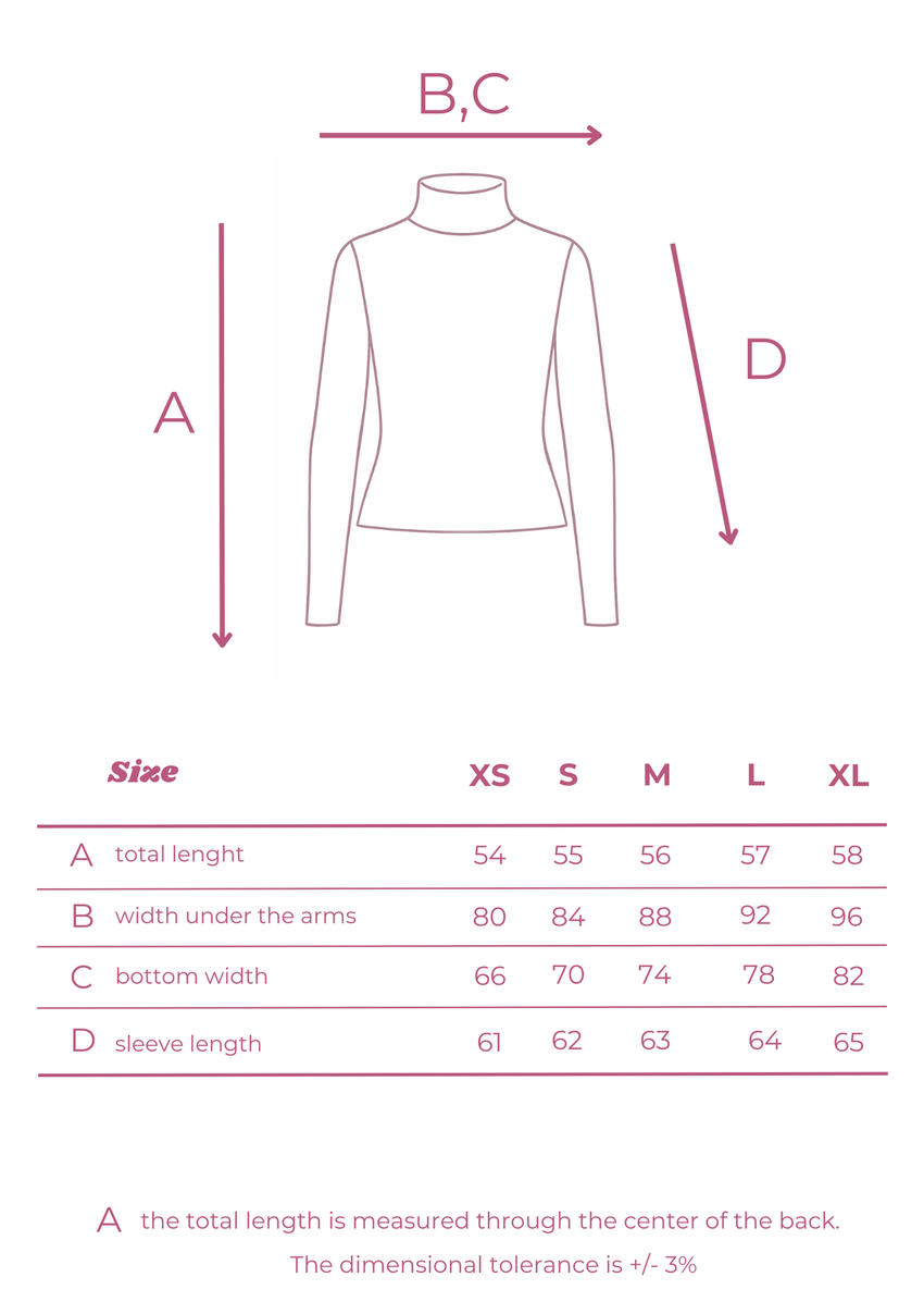 The Mira Rossa turtleneck is a feminine manifesto of style and sensuality. Covered with a rose print on a deep red background, it attracts attention and boosts confidence. It has long sleeves, a slightly fitted cut, and soft, stretchy fabric that drapes beautifully over the figure. The print is versatile and timeless—it will work today, tomorrow, and for several seasons to come. It's one of those pieces that makes the whole outfit—just add your favorite jeans and you're ready to go.
