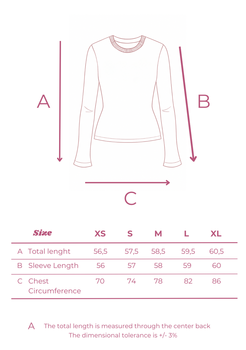 When mornings get colder and days get shorter, long sleeves come back into fashion. Rosa Feroce is the perfect model for the transition between seasons: made of soft fabric with our iconic pink trim, it hugs the figure without sacrificing its distinctive character. The original print with small roses and buds introduces a romantic atmosphere with a delicate edge, while the black background adds depth and makes it a perfect fit for your fall and winter wardrobe. It's a model you can wear all day long, from your morning cappuccino to an evening glass of wine with a friend.