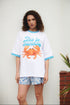 The CRAB t-shirt is a summer must-have in a unisex version – combining comfort, style, and a touch of humor. The white base is adorned with a charming crab graphic and a blue “She is Sunday” print that evokes the spirit of summer adventures. Unique blue-and-white striped ribbing, inspired by the classic Greek meander motif, adds a Mediterranean flair. Perfect for casual city outfits or thrown over a swimsuit for the beach. A stylish summer pick that catches the eye and lifts the mood!