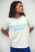 The QUEEN t-shirt is a tribute to the carefree vibe and energy that summer days bring! Its creamy base color pairs perfectly with the baby blue lettering – one of the hottest trends of the season. With its regular fit, the tee drapes beautifully on the body, while the high-quality fabric ensures all-day comfort. Stylish, fresh, and full of lightness – it’s perfect for both everyday wear and summer parties.