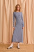 The Brooke Striped dress is a stunning, long dress made from elastic knit fabric that perfectly fits the body, providing comfort and ease of wear. The cream and navy stripes add a touch of class and timeless style, making it ideal for various occasions—both casual and more elegant outings. Its simple yet refined design accentuates feminine curves, giving the silhouette a slimming effect.