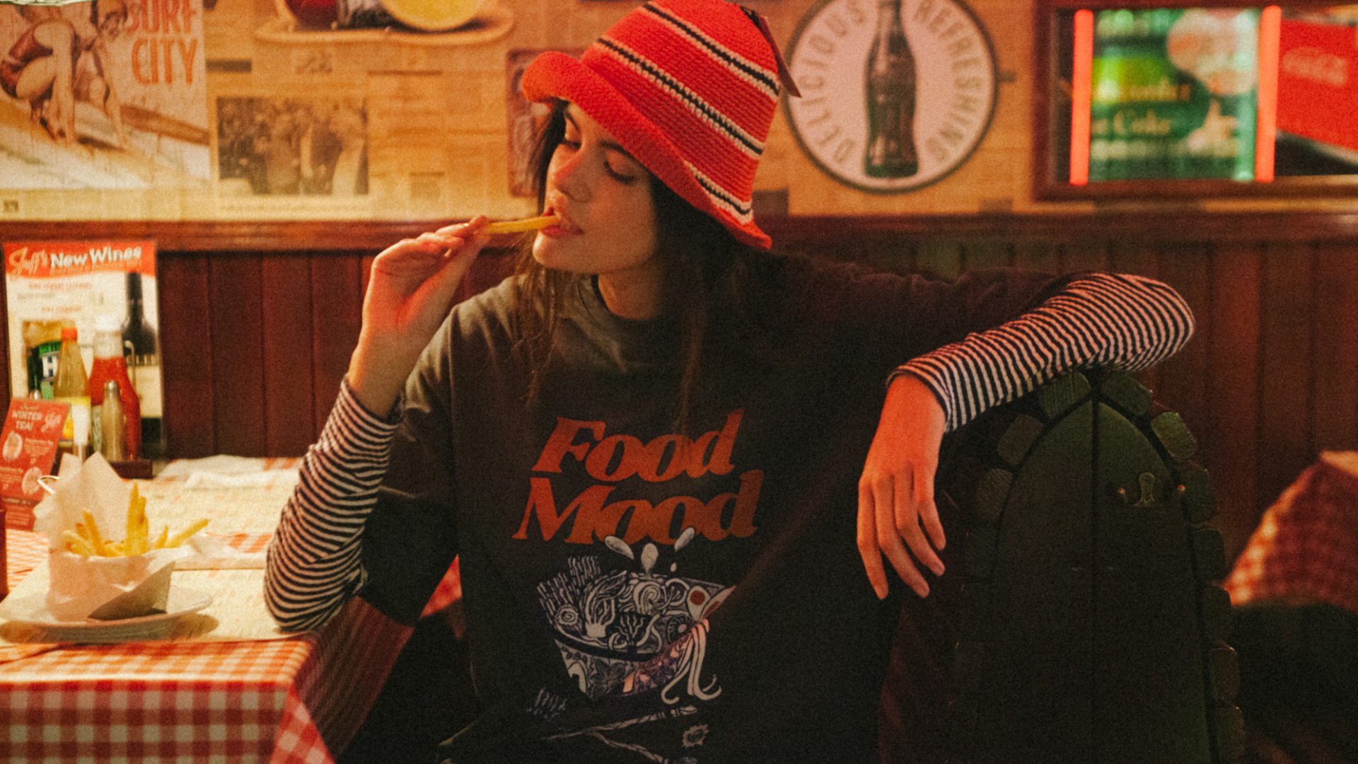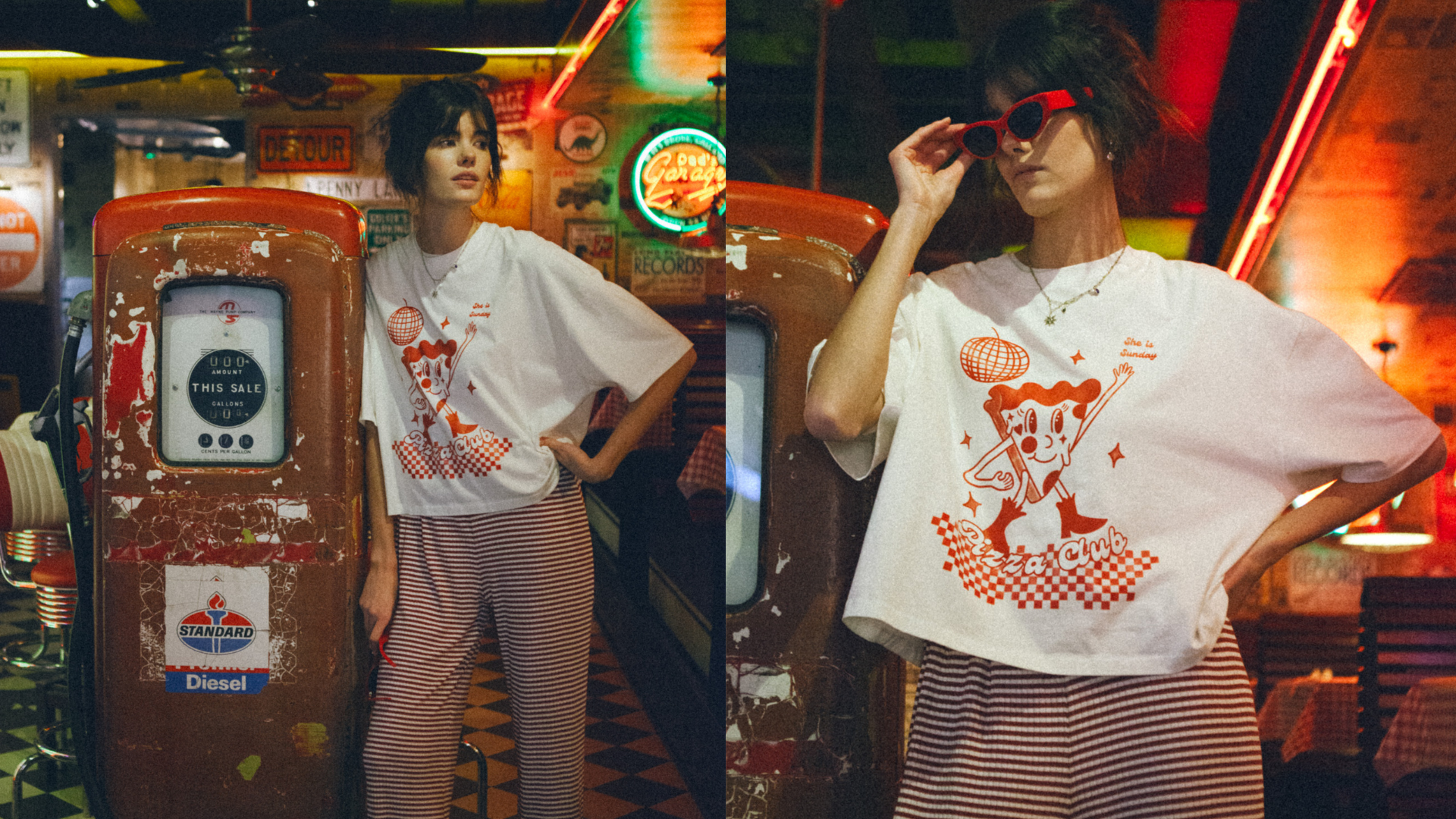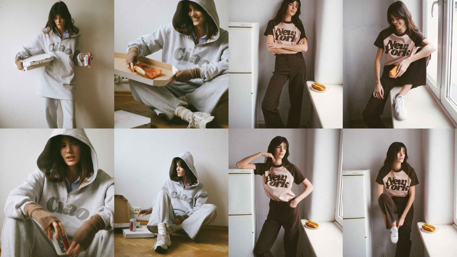 The collection also pays homage to New York's rich culinary culture. T-shirts featuring pizza graphics and the slogan "FOOD MOOD" capture the essence of a city that's both a fashion and food capital. These playful elements add a touch of lightness and humor to the collection, perfectly reflecting the New York lifestyle and the signature SIS style.
