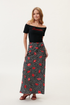 Spódnica Hollywood Lips to esencja zmysłowości w klimacie retro, będąca hołdem dla ikonicznego stylu Marilyn Monroe. Wyrazisty print inspirowany ustami gwiazdy nadaje jej filmowego charakteru, idealnie wpisując się w romantyzm kolekcji Bad Romance. Fason o długości maxi pięknie układa się w ruchu, a elastyczna gumka w pasie gwarantuje perfekcyjne dopasowanie i wygodę przez cały dzień. To projekt stworzony dla kobiet, które chcą przyciągać spojrzenia, nie rezygnując z pełnej swobody.