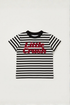 T-shirt Little Crush w klasyczne, czarno-białe paski to nowość, która pozwoli stworzyć uroczy zestaw „matchy-matchy” z wersjami Mami i Papa. Wykonany z najwyższej jakości, miękkiej bawełny, zapewnia delikatnej skórze dziecka pełen komfort i swobodę ruchów podczas zabawy. Na środku znajduje się napis „Little Crush”, wykonany czerwonym, wypukłym flockiem, który jest niezwykle miły w dotyku. To stylowy i radosny element dziecięcej garderoby, który dodaje charakteru codziennym stylizacjom.